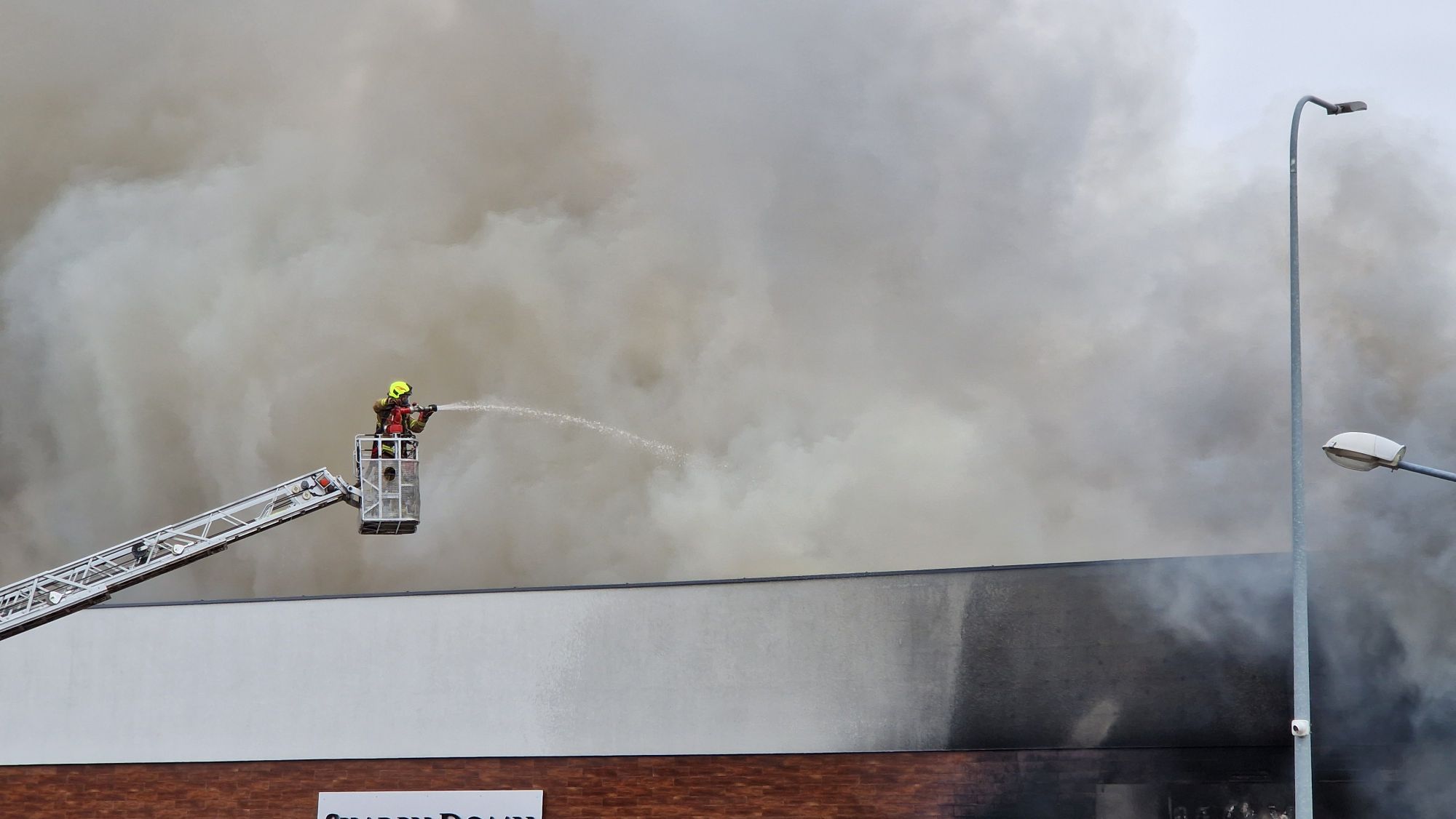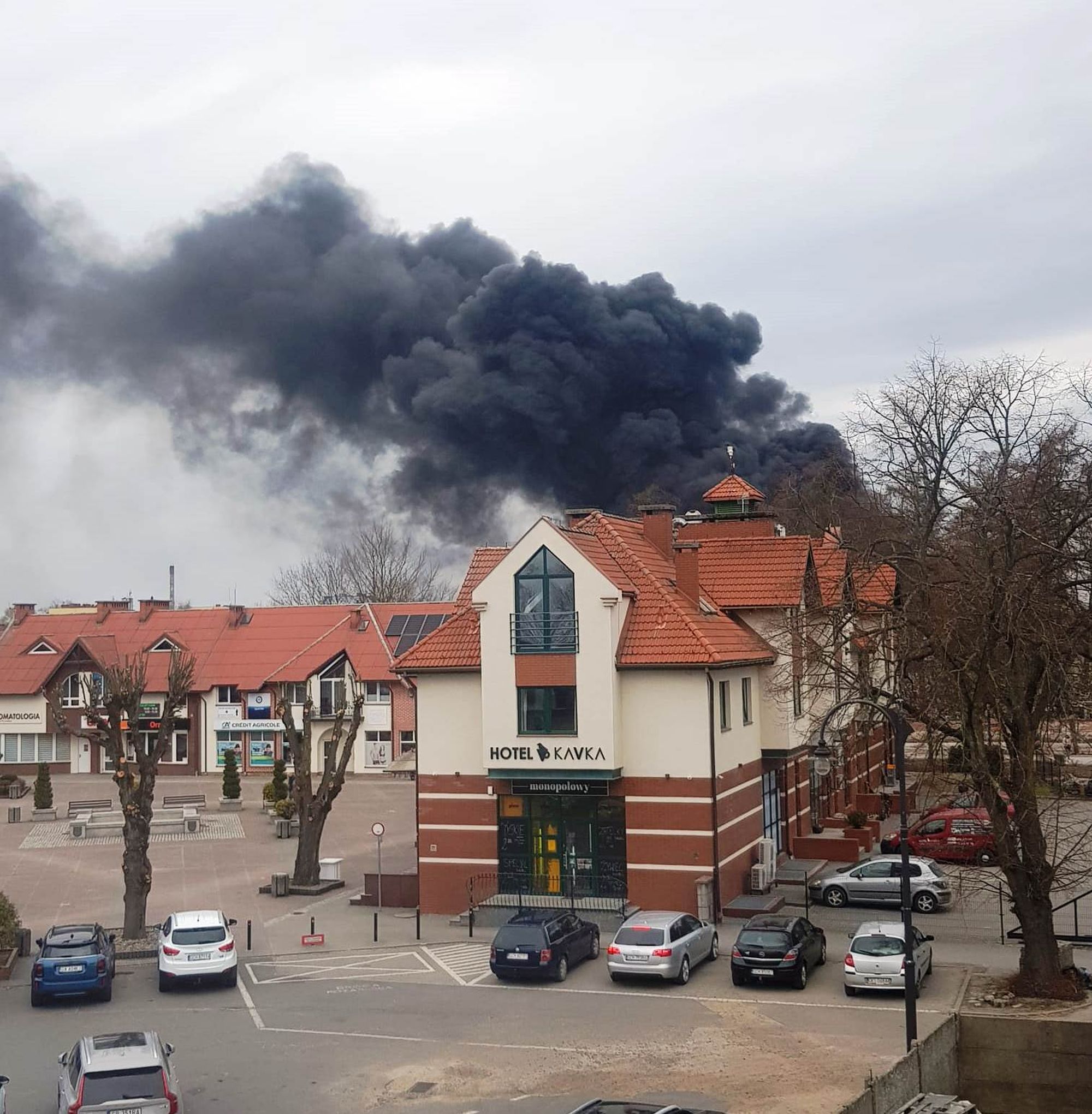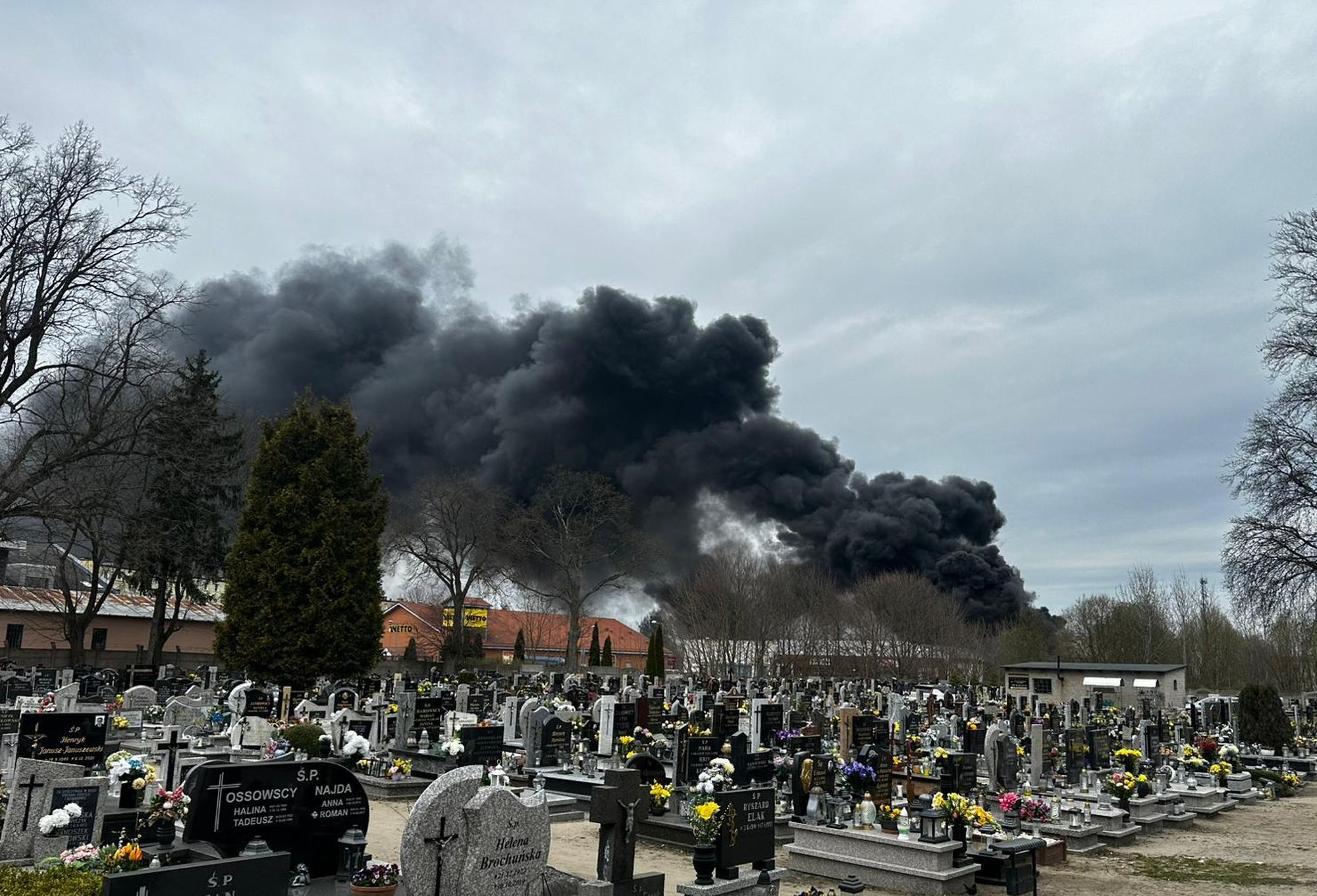 Na miejscu pracują liczne służby ratunkowe, które prowadzą intensywną akcję gaśniczą. Nad okolicą unosi się gęste zadymienie, widoczne z dużej odległości. Na miejscu zdarzenia pracuje ponad 20 zastępów straży pożarnej, w tym specjalistyczna grupa ratownictwa chemicznego oraz samochód „gaz”. Łącznie działania prowadzi około 60 strażaków.