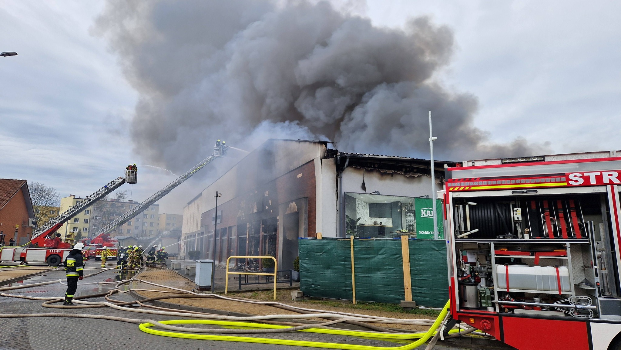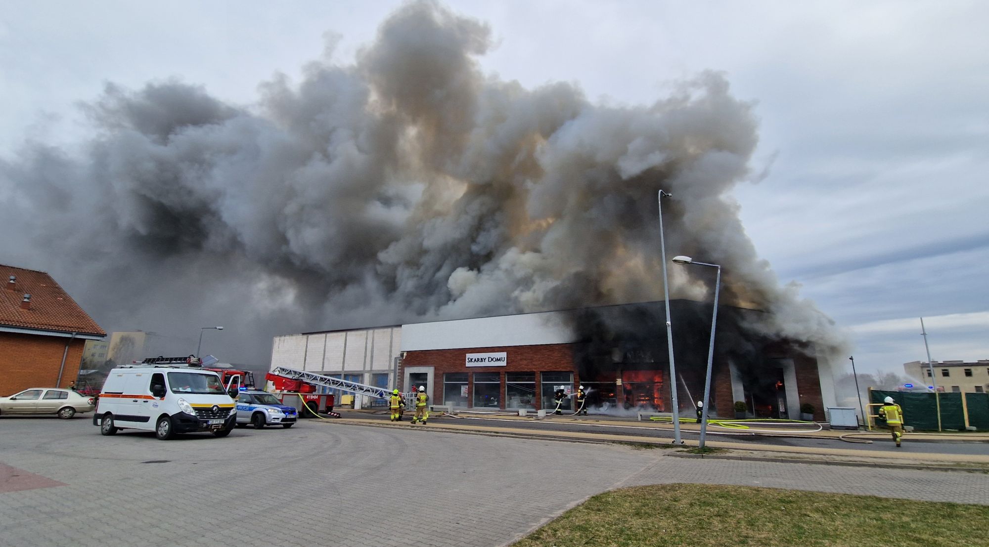CZERSK. Trwa dogaszanie obiektu handlowego w Czersku. Spłonął Chiński Market i sklep meblowy. Straty mogą sięgać ok. 6 mln zł. Właściciel obiektu dziękuję wszystkim służbom za wykazane poświęcenie w trakcie akcji gaśniczej. Użyto 26 sił i środków z pow. chojnickiego i sąsiednich powiatów. Ewakuowano 50 osób z pobliskich bloków do SP1- występowało silne zadymienie. Przyczynę pożaru ma ustalić policja. Trzem osobom udzielono pomocy. 6 osob z placówek handlowych ewakuowało się na zewnątrz budynku. Po zakończeniu akcji zostaną przeszukane wnętrza obiektu. Więcej wkrótce.