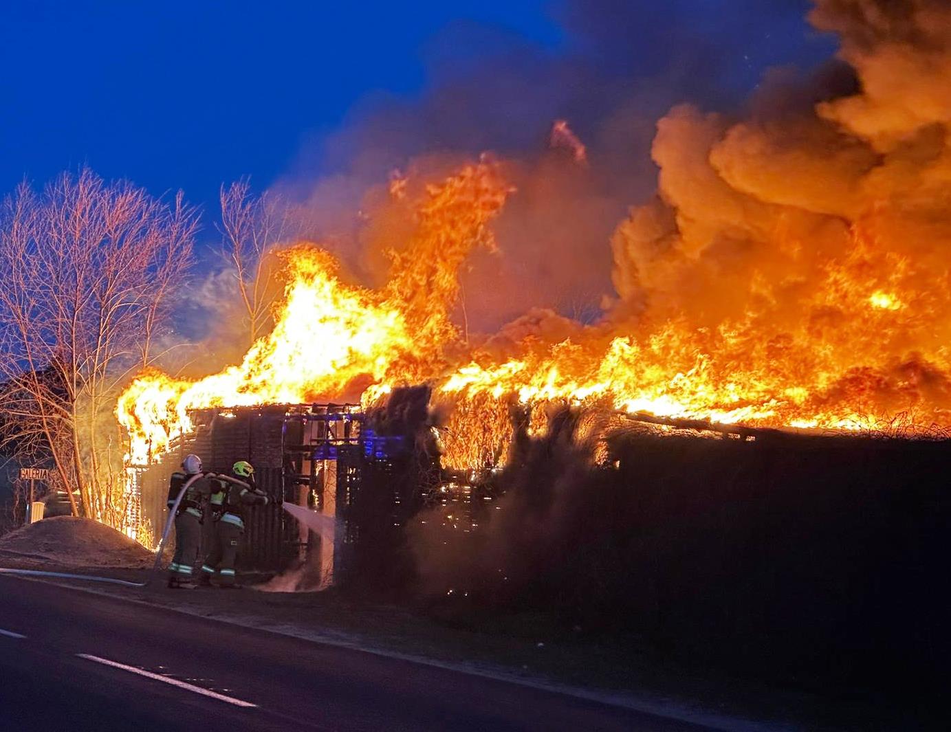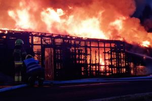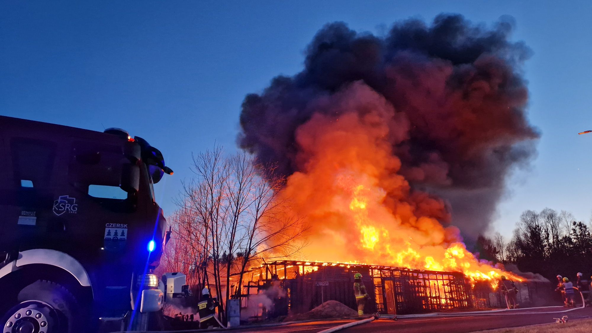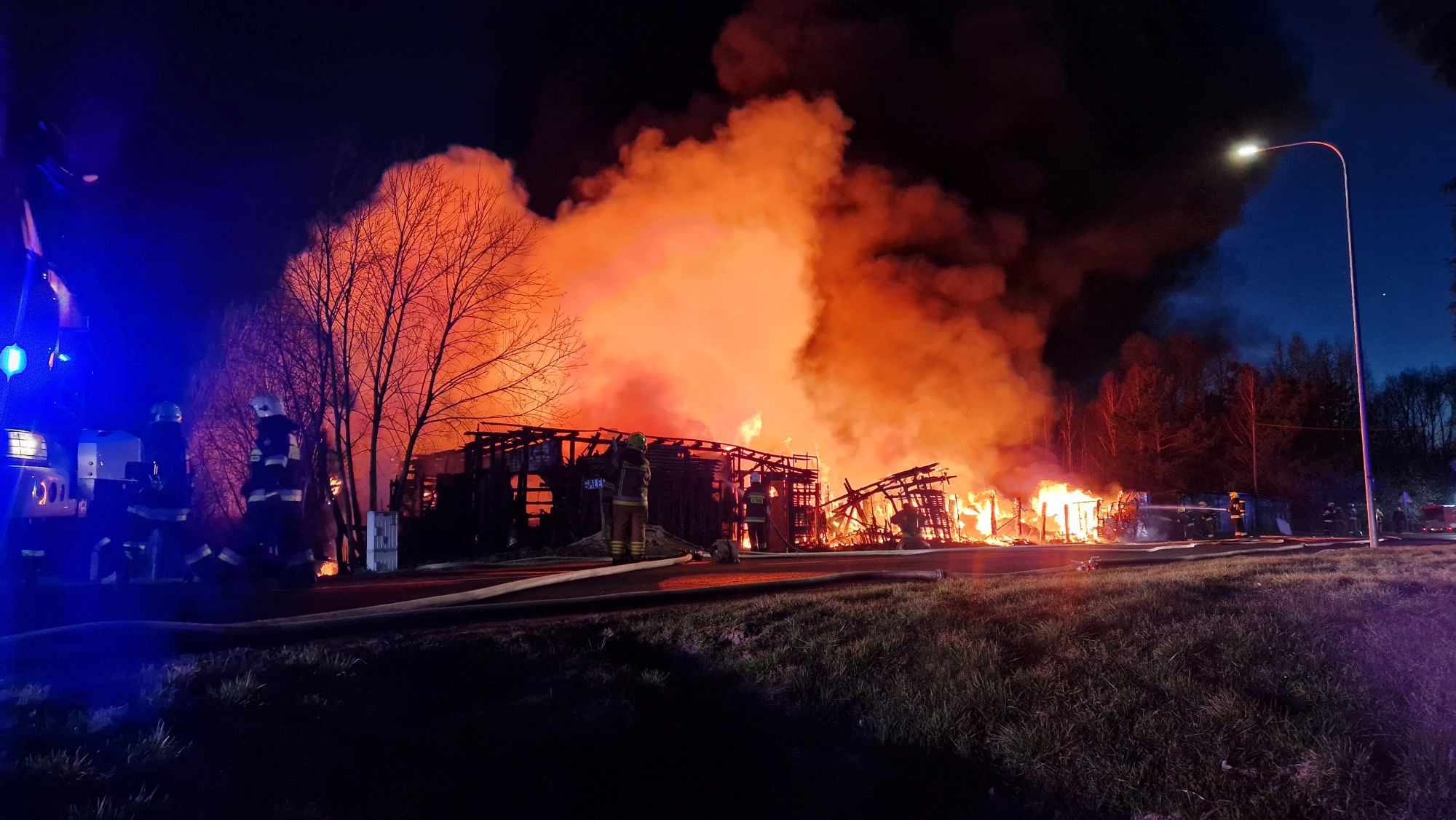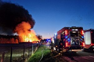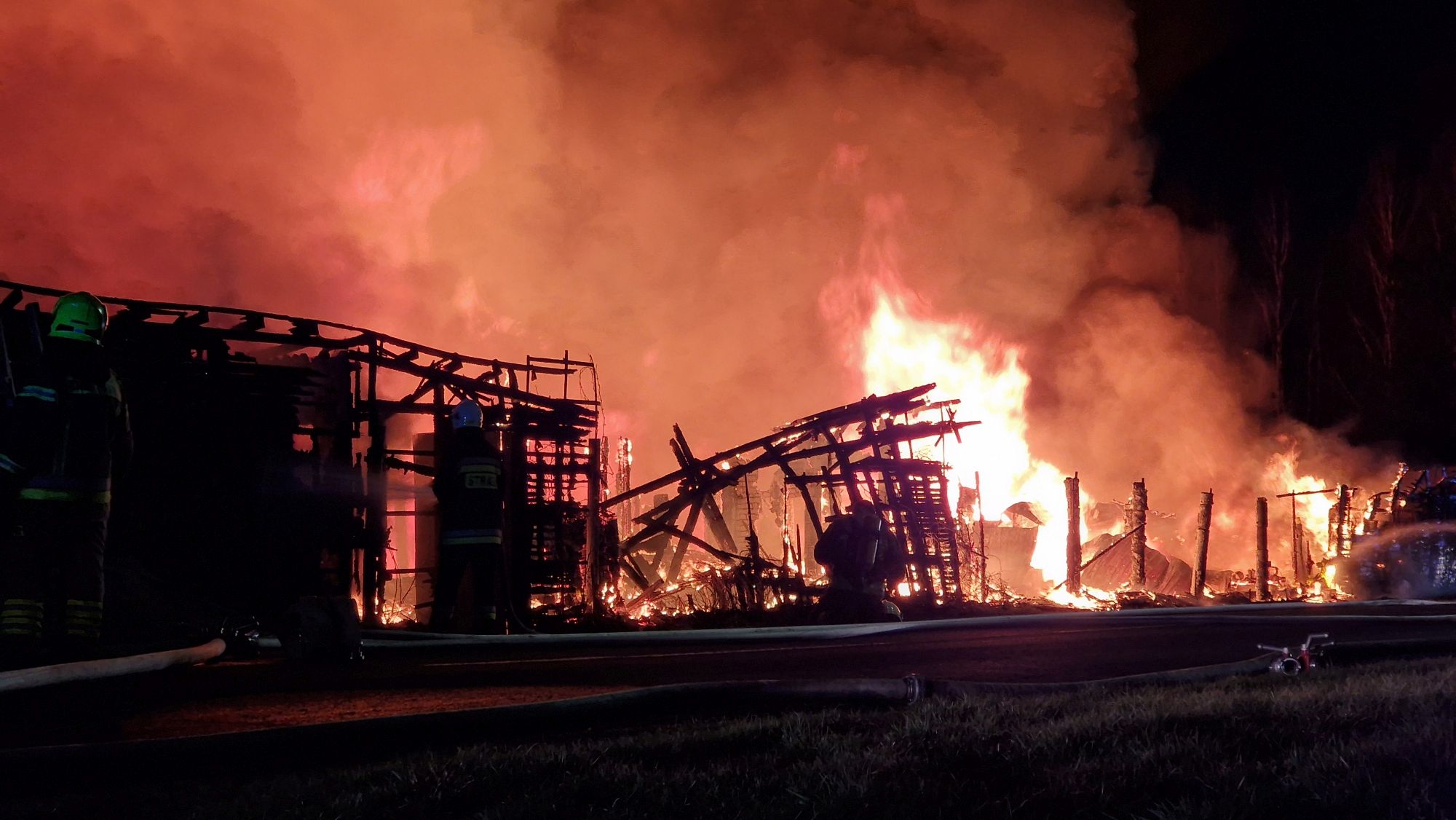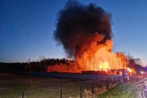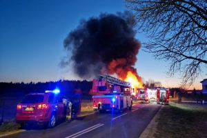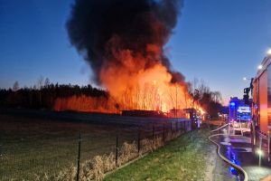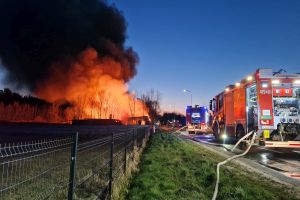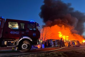 Sytuacja jest poważna – ogień szybko się rozprzestrzenił (na miejscu miała być prowadzona działalność rękodzielnicza - m.in. figurki, świece, znicze, stroiki, itp.), a nad okolicą unosi się gęste zadymienie, widoczne z dużej odległości. Strażacy prowadzą działania mające na celu opanowanie pożaru oraz niedopuszczenie do jego rozprzestrzenienia się na kolejne obiekty.