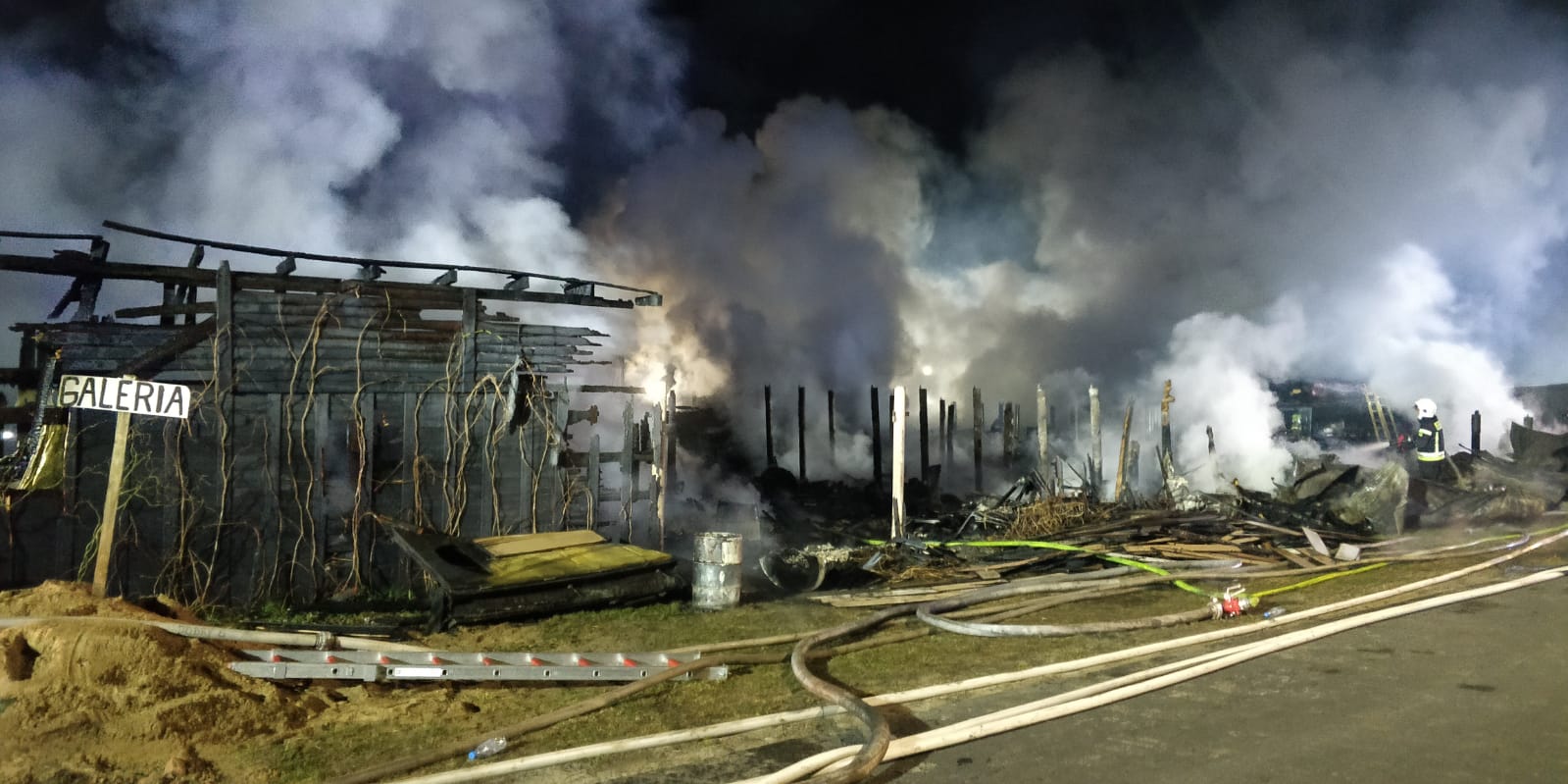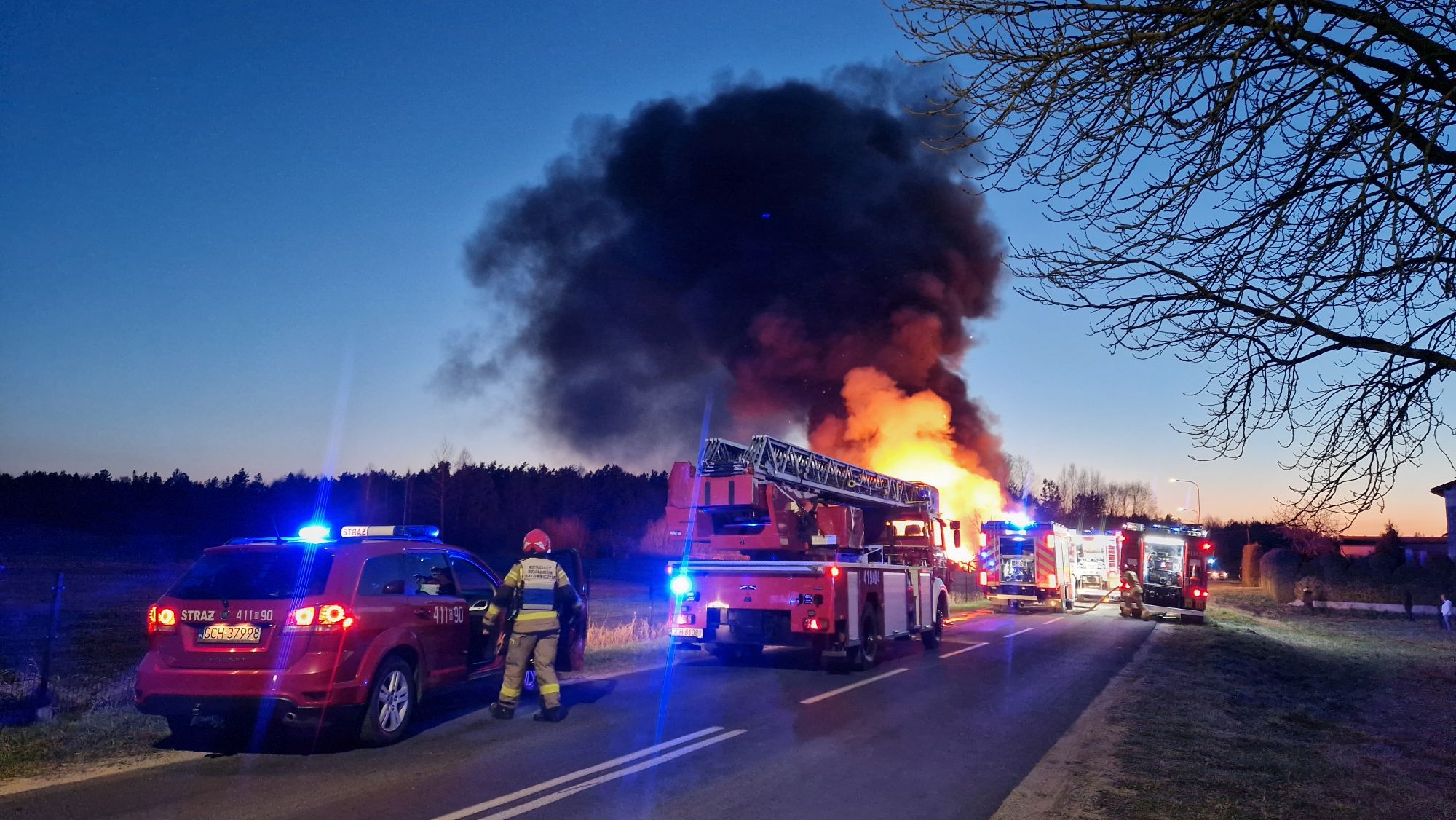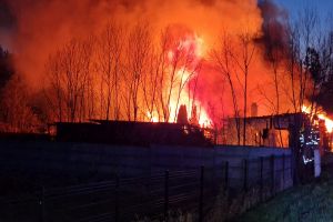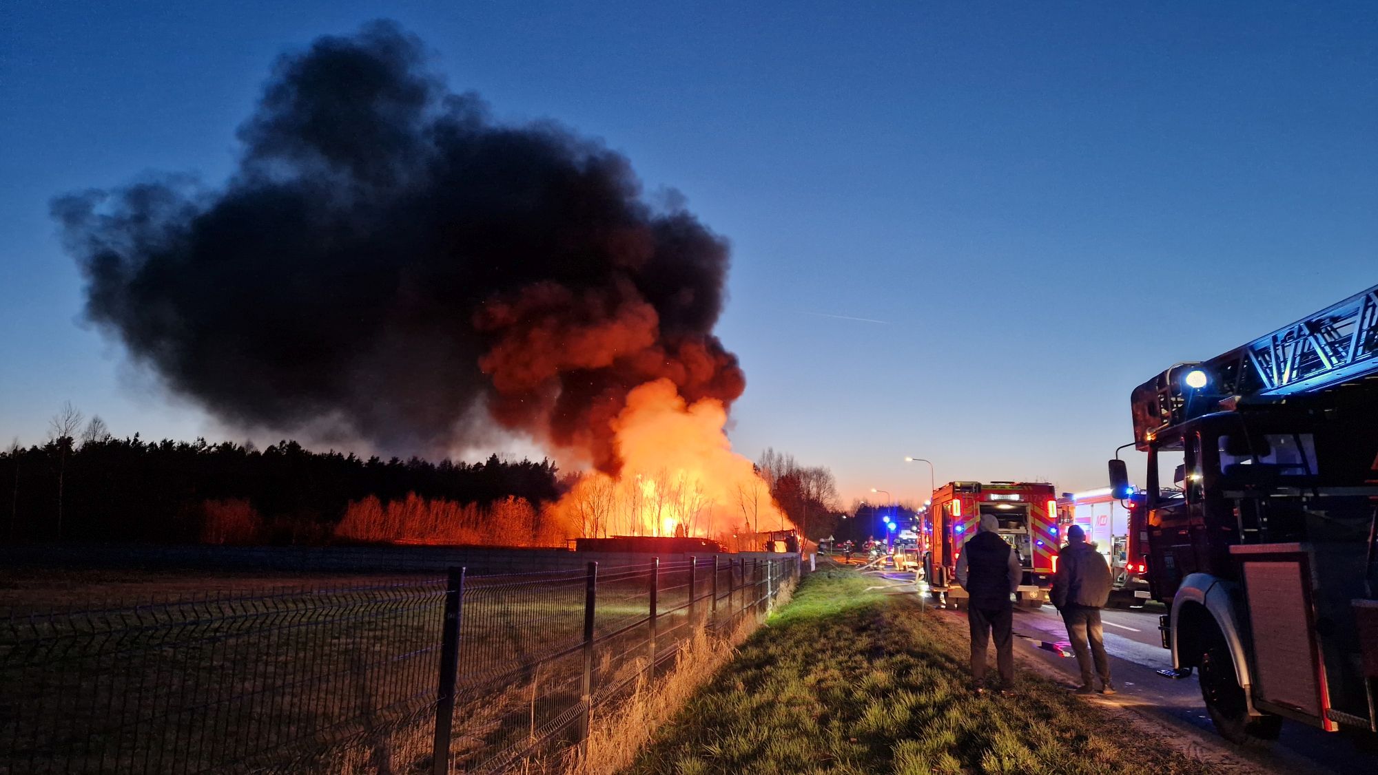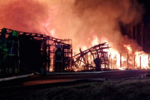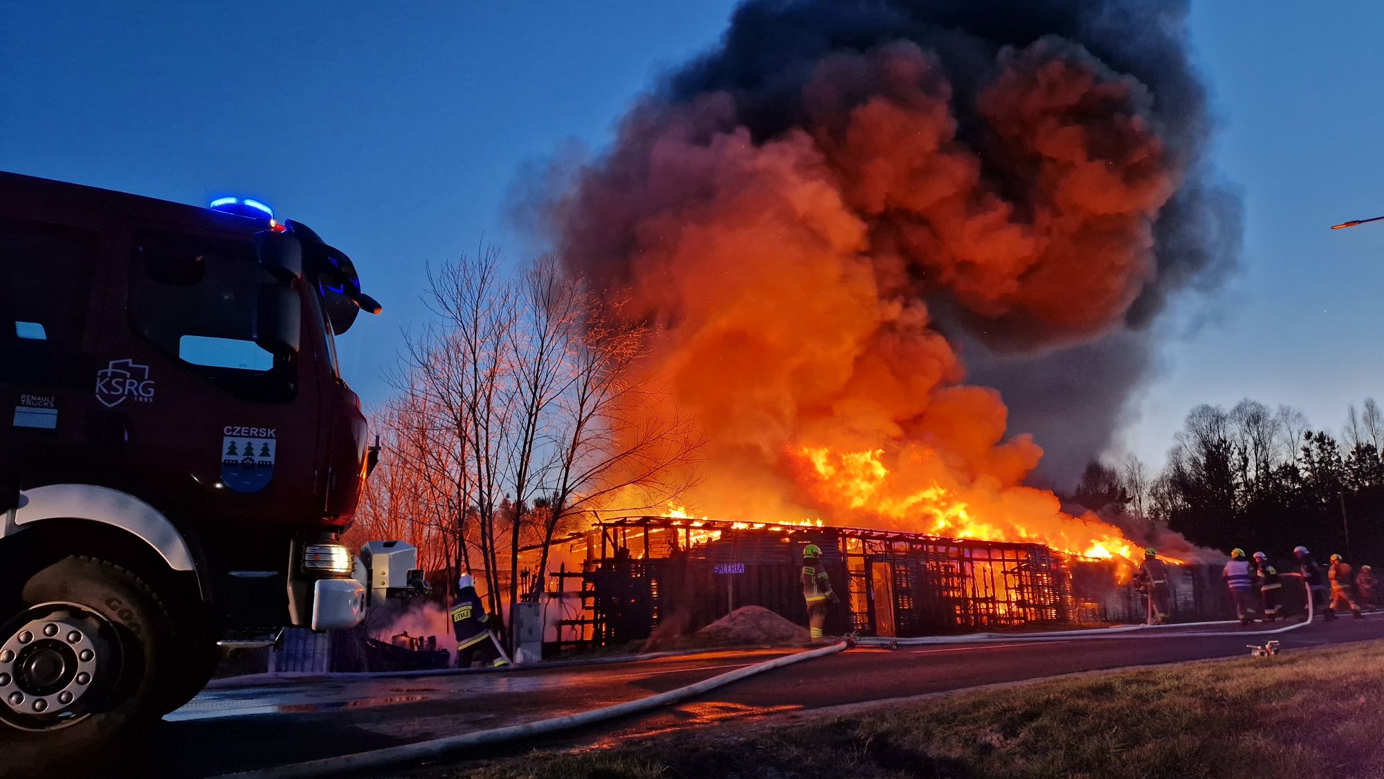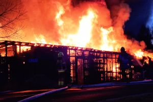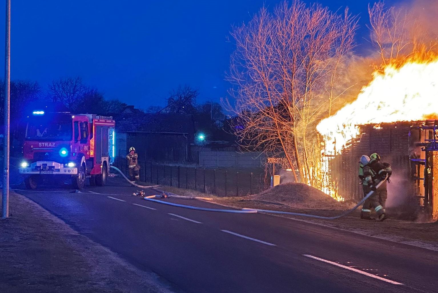 Sytuacja jest poważna – ogień szybko się rozprzestrzenił (na miejscu miała być prowadzona działalność rękodzielnicza - m.in. figurki, świece, znicze, stroiki, itp.), a nad okolicą unosi się gęste zadymienie, widoczne z dużej odległości. Strażacy prowadzą działania mające na celu opanowanie pożaru oraz niedopuszczenie do jego rozprzestrzenienia się na kolejne obiekty.