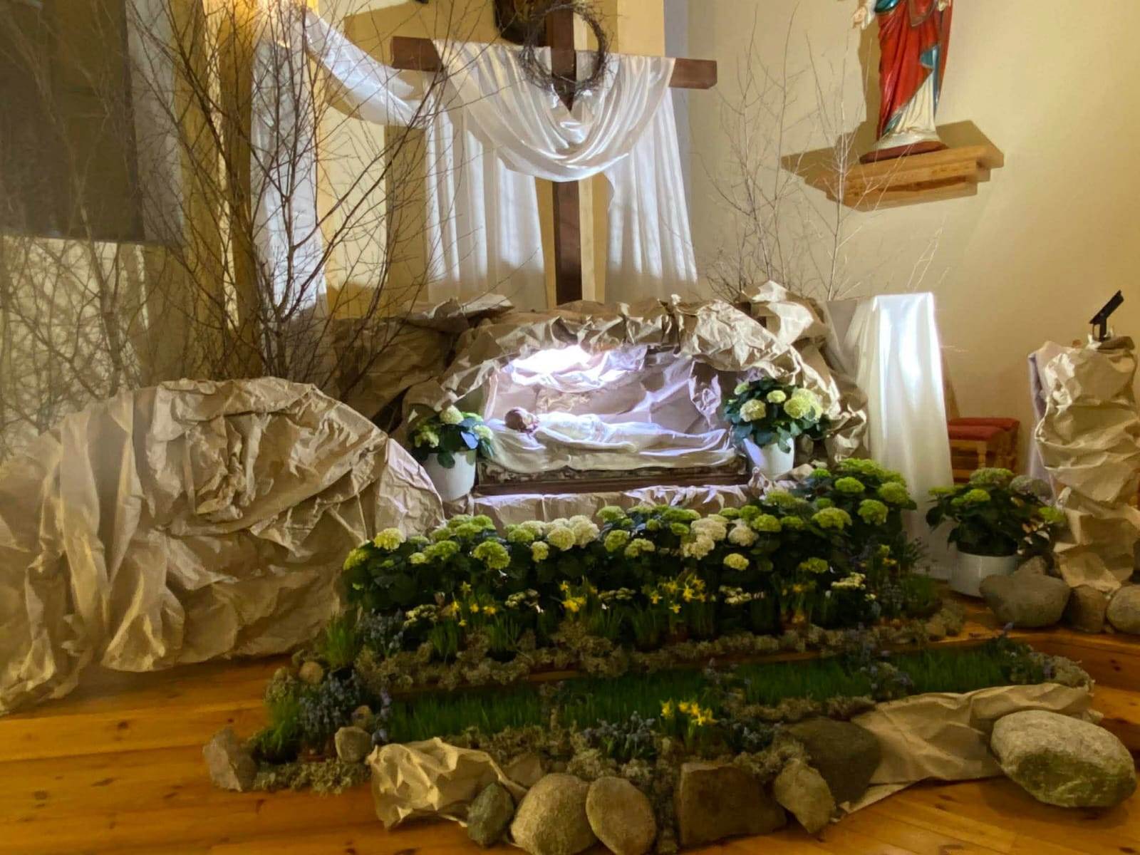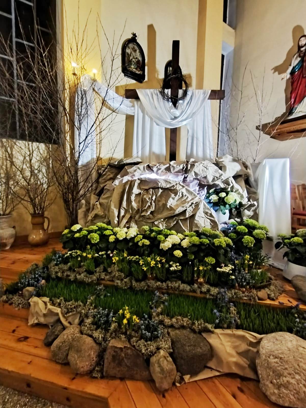 W Parafii pw. Świętego Józefa w Mokrem k. Czerska przygotowano w tym roku wyjątkowy Grób Pański, który łączy szlachetność formy z głęboką symboliką liturgiczną oraz pięknem naturalnych dekoracji.