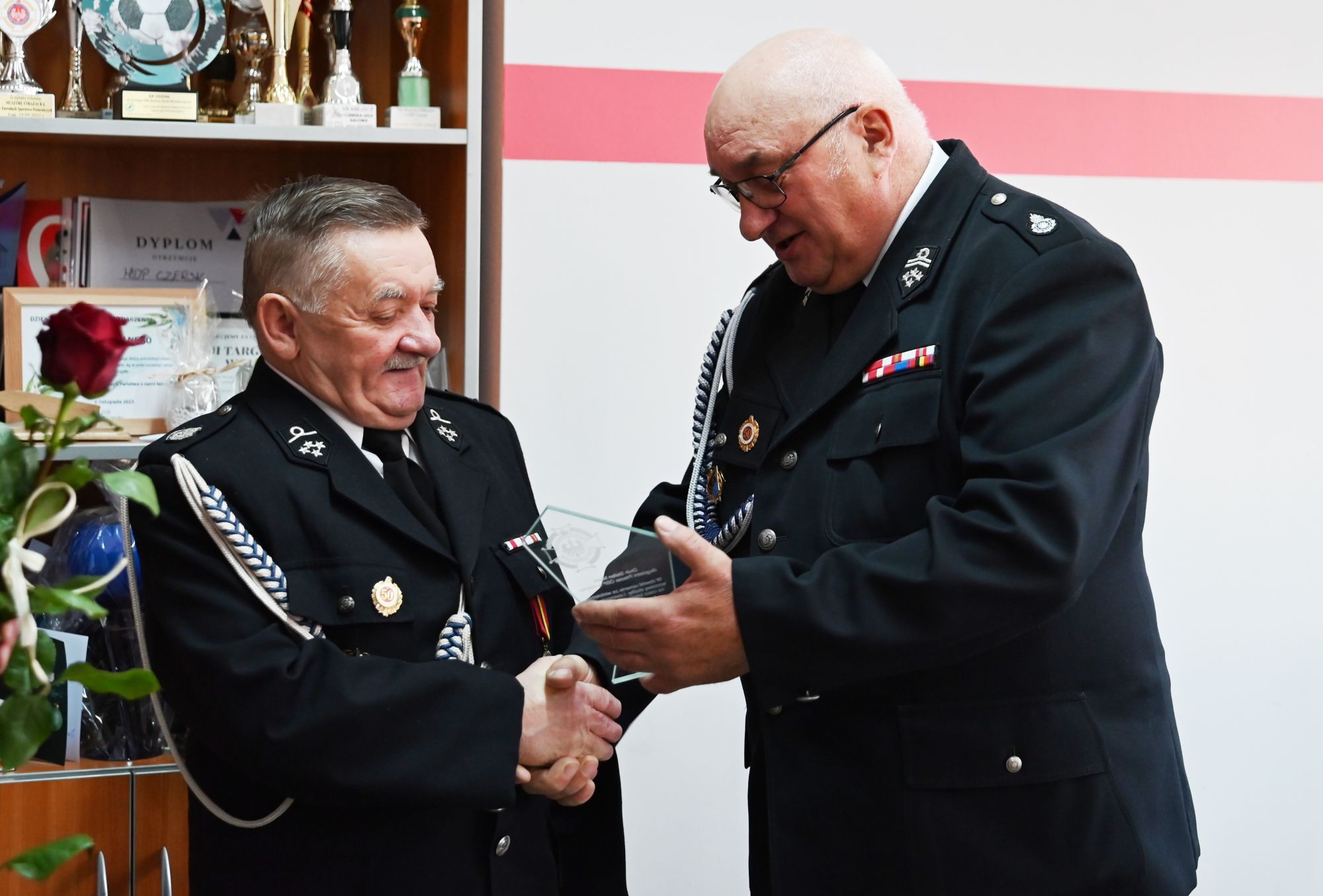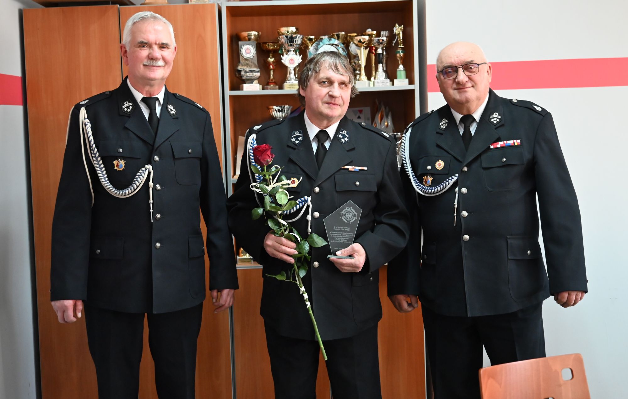 Podczas uroczystości wręczono pamiątkowe statuetki oraz podziękowania, które były wyrazem wdzięczności za wieloletnią służbę, zaangażowanie oraz wkład w rozwój jednostek i bezpieczeństwo mieszkańców.