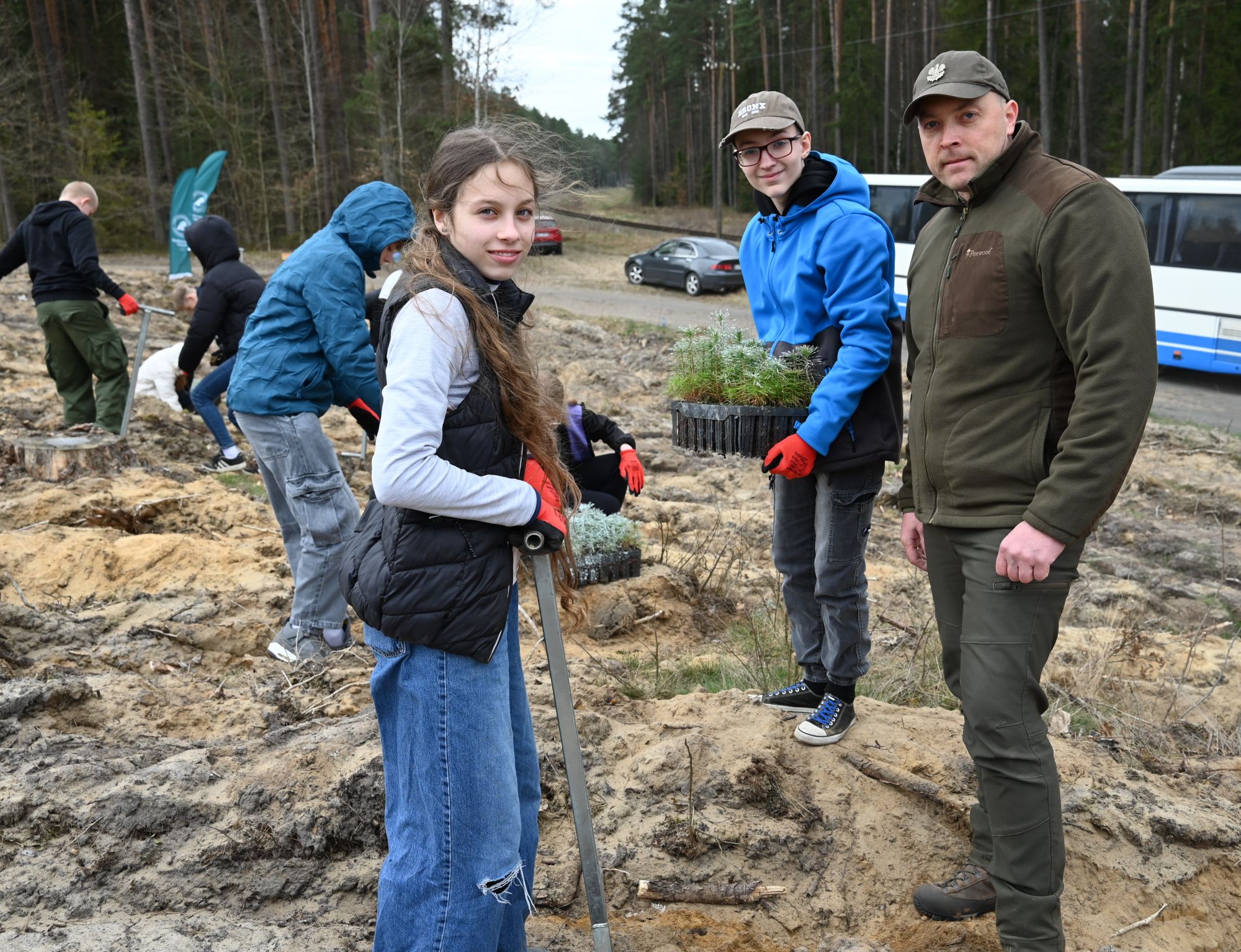 Uczestników powitał nadleśniczy Tomasz Grugel, który podkreślił znaczenie takich inicjatyw dla środowiska oraz edukacji przyrodniczej. Zanim rozpoczęto pracę w terenie, przeprowadzono krótkie szkolenie – pokazano, jak prawidłowo korzystać z kosztura oraz jak sadzić młode drzewka.