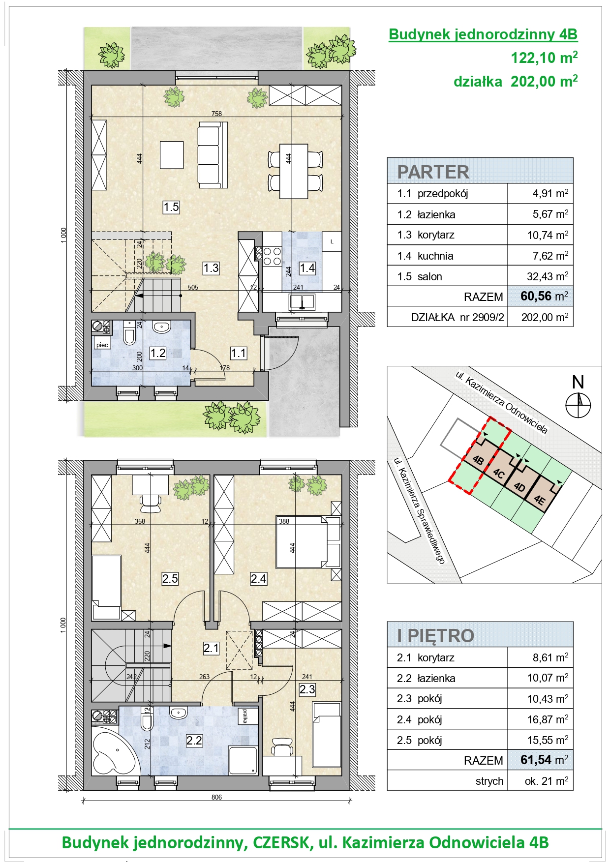 Nowe domy w zabudowie szeregowej przy ul. Kazimierza Odnowiciela 4B,4C,4D,4E, w CZERSKU. Dom ma 2 kondygnacje oraz nieużytkowe poddasze. Posiada salon z dużym oknem na ogród od strony południowej oraz 3 duże i funkcjonalne sypialnie.